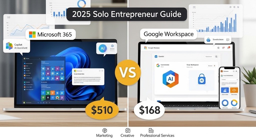 While Microsoft delivers slightly higher productivity gains, Google's superior cost efficiency results in better overall value for most solo entrepreneurs.